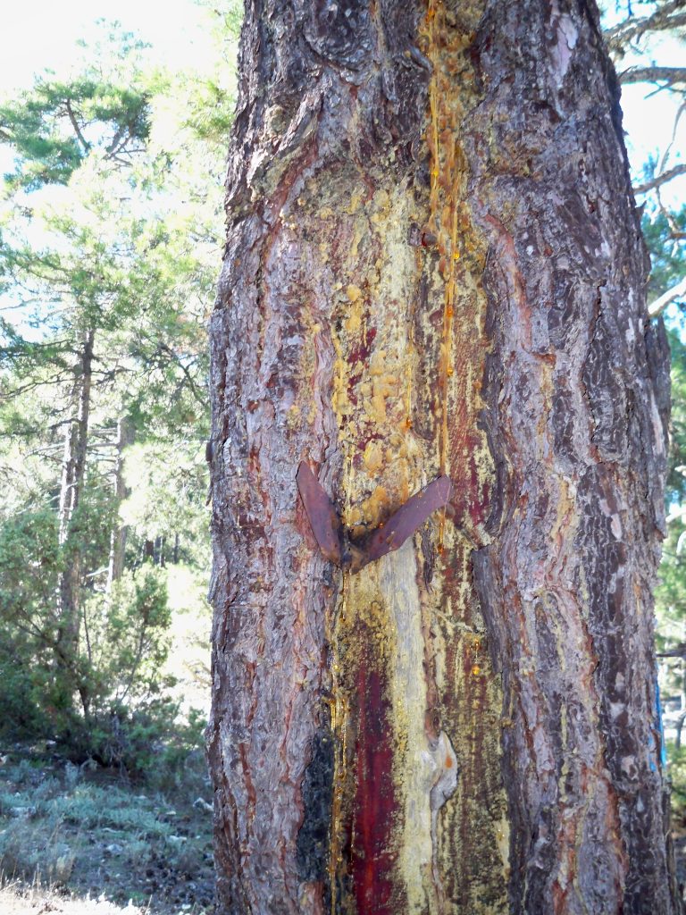 Esta resina se destilaba dando origen a dos productos: la esencia de trementina o aguarrás y la colofonia o pega griega.