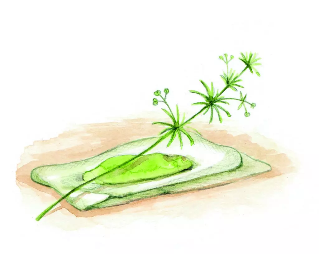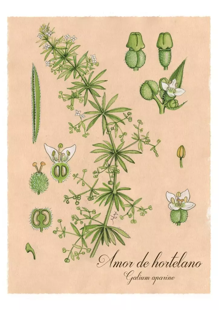Amor de hortelano o lapa (Galium aparine) por Azahar Giner. Agenda herbal 2022.